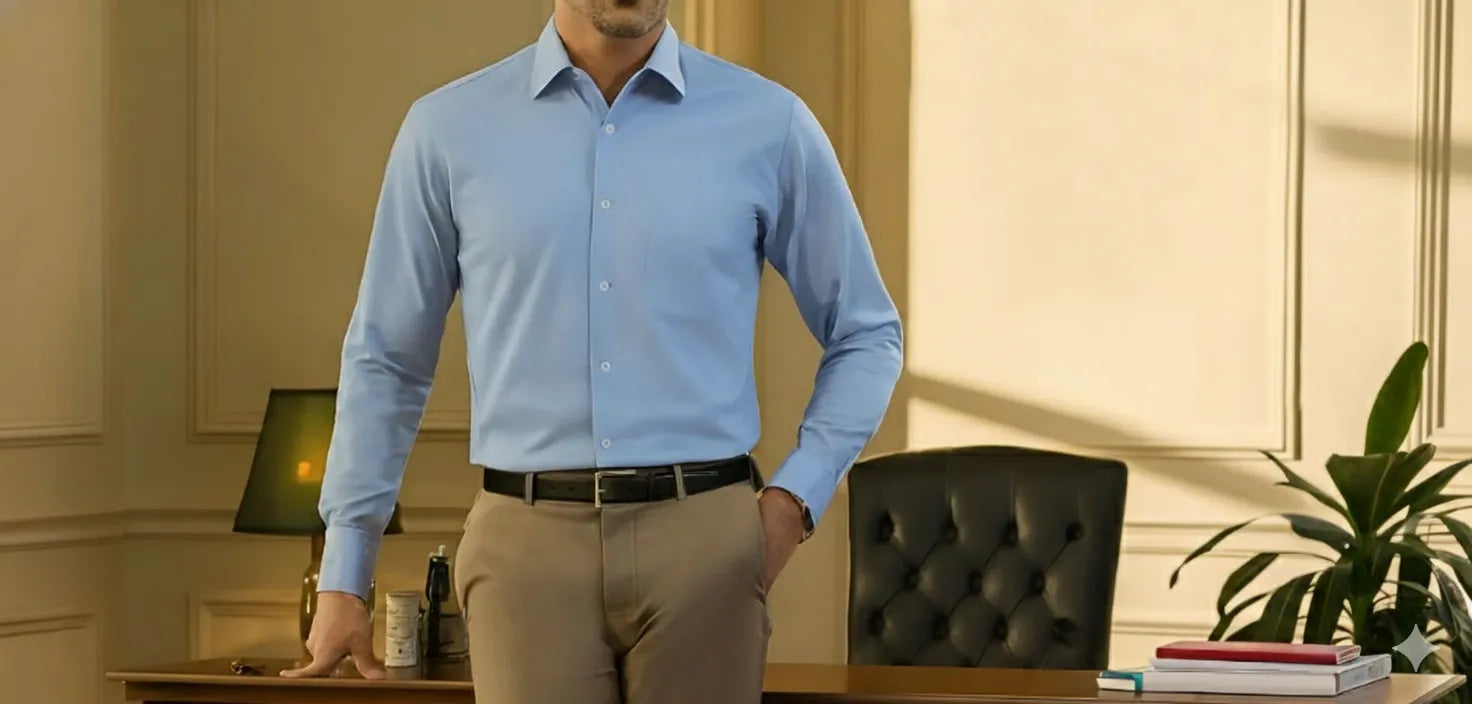 Men's Cotton Chambray Executive Shirt(Sky Blue)