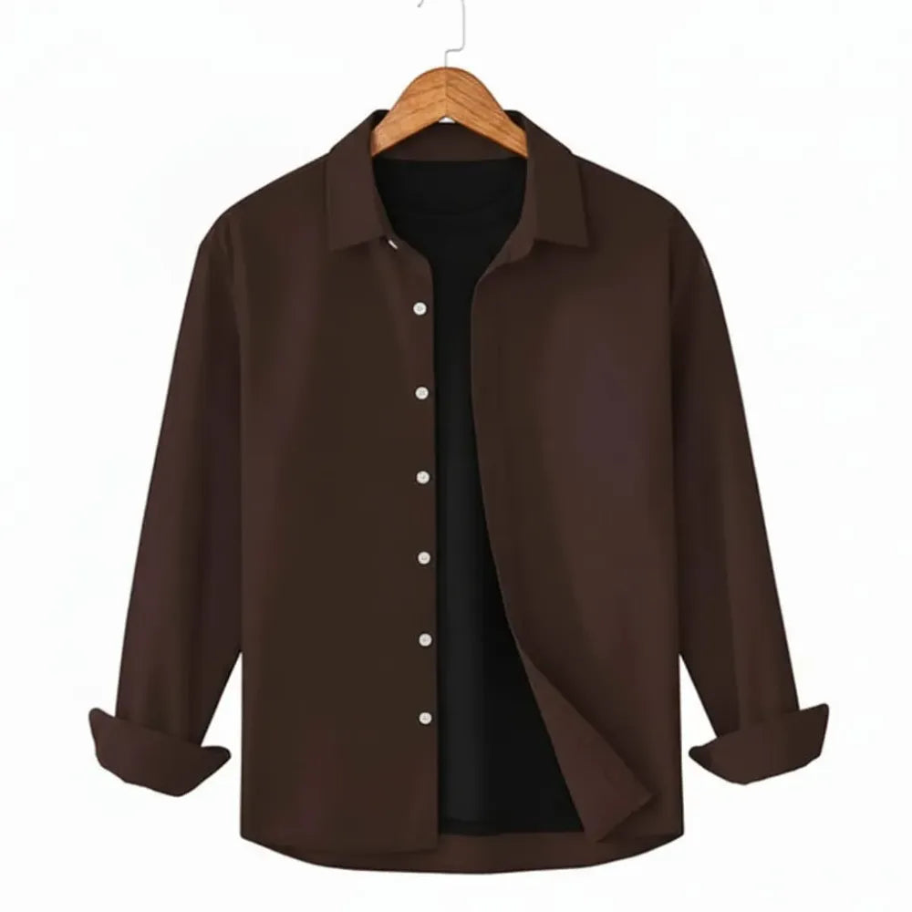 Men's Cotton Chambray Executive Shirt(Chocolate Brown)